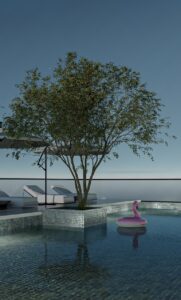 Rooftop restaurant with infinity pool.